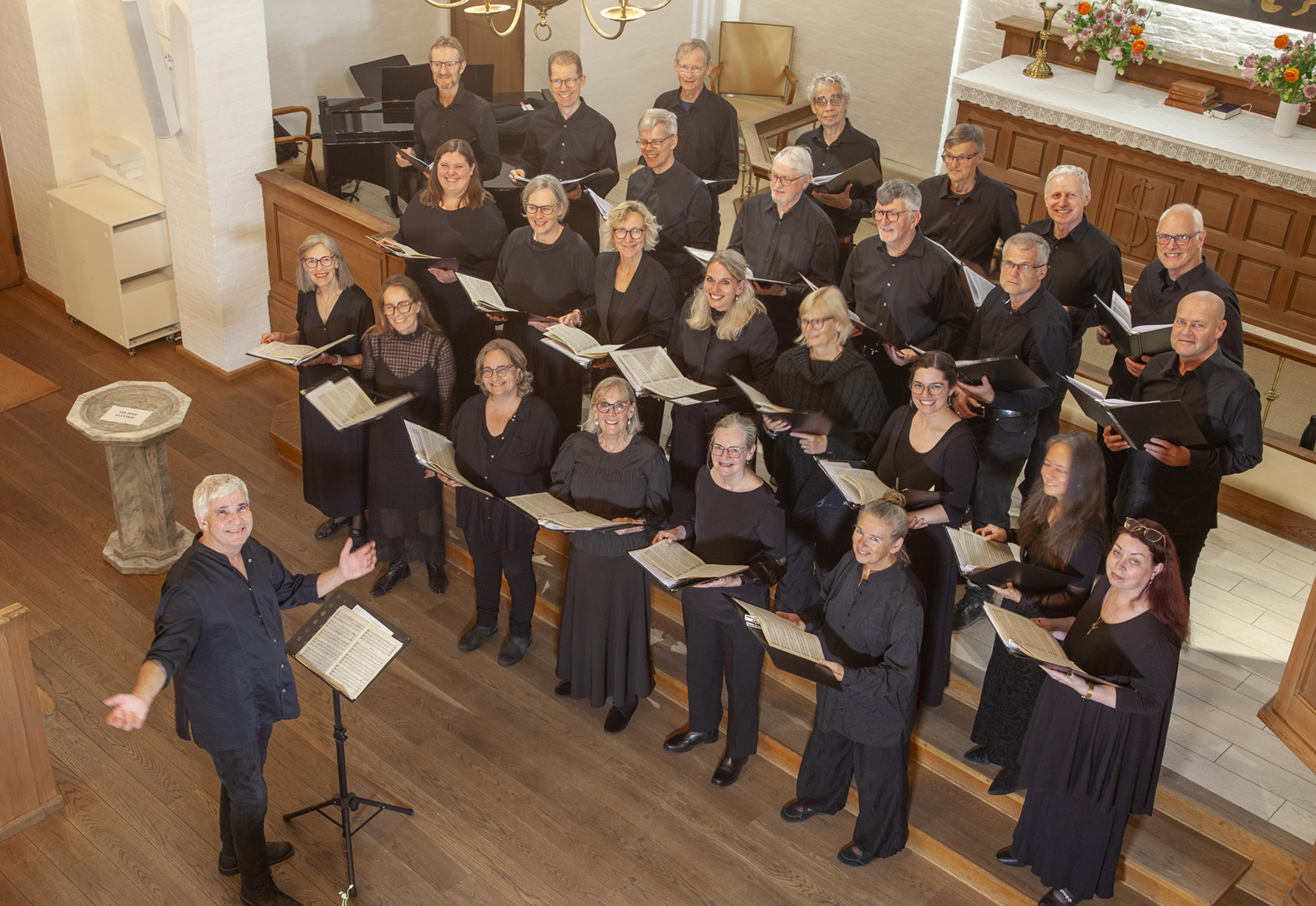 Vi har forskellige uddannelser og arbejder inden for forskellige brancher - men har det til fælles, at vi elsker at synge. Vi øver i Hans Egedes Kirke, Østerbro, hvor vi også fungerer som huskor.
